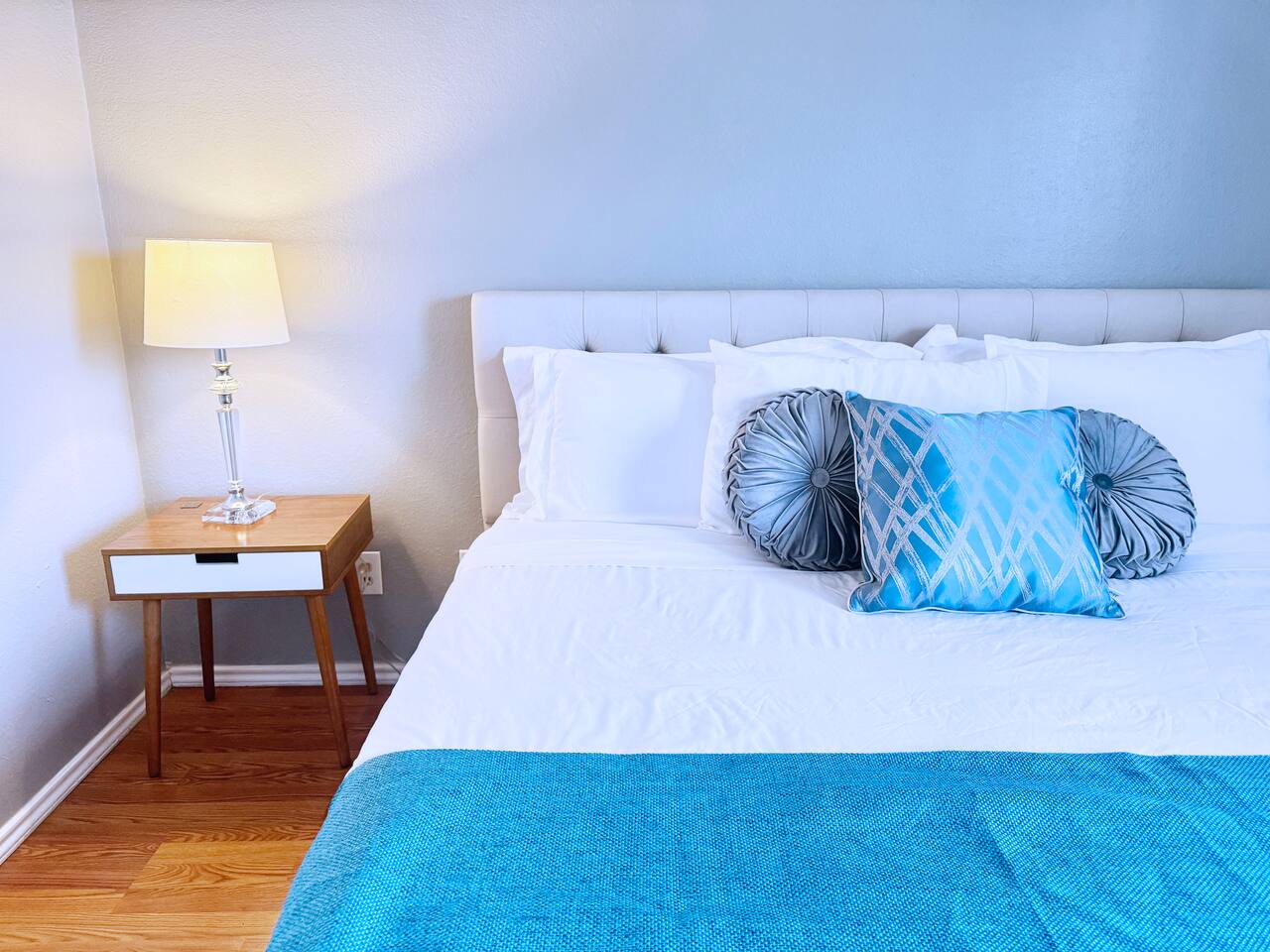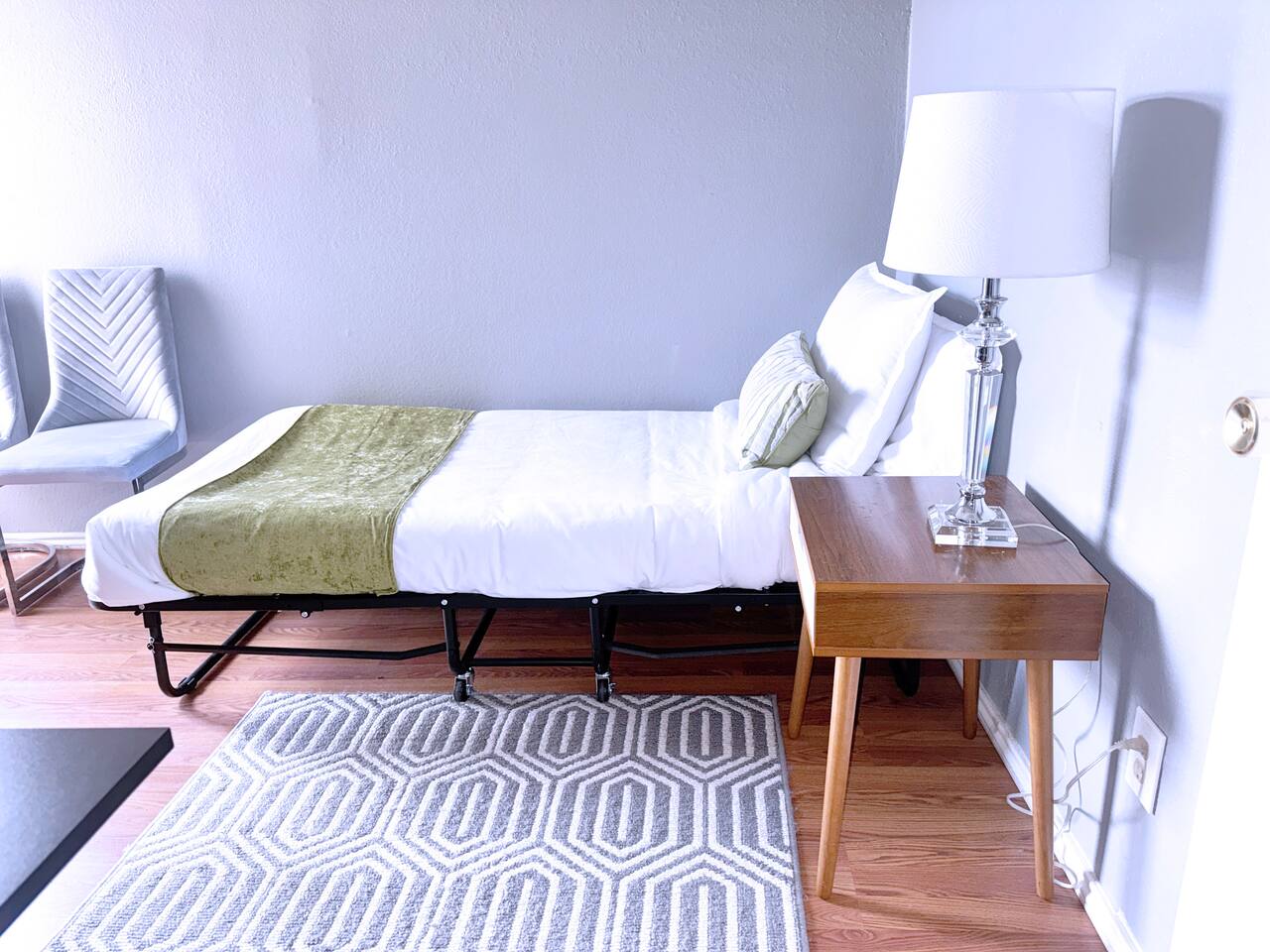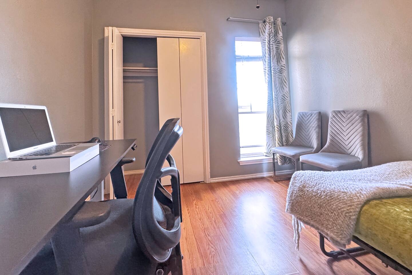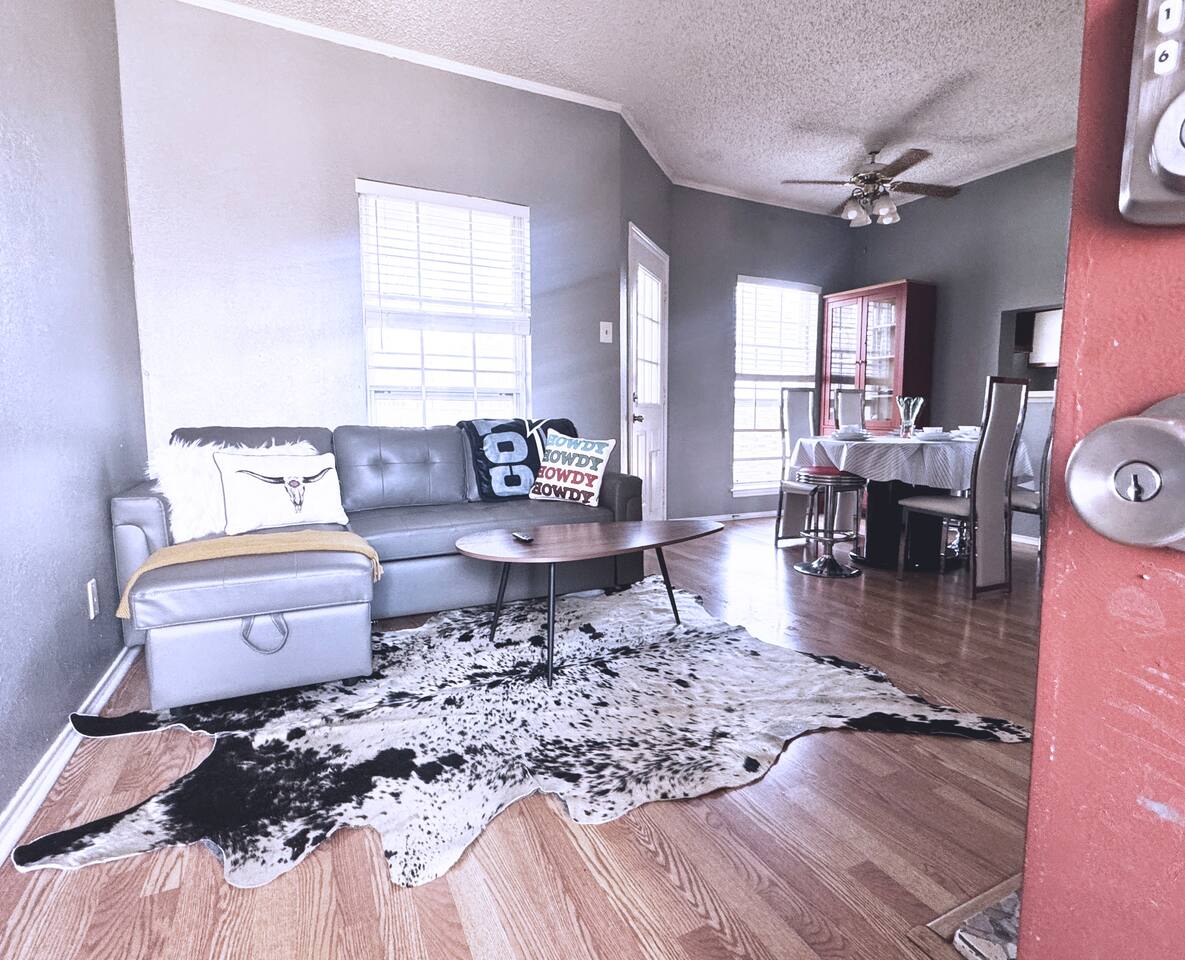 Our beautiful second-floor, single-level condo comfortably accommodates guests with two private bedrooms, one full bathroom, and one half bath. The layout works well for families, professionals,roommates or traveling medical staff. Sleeping arrangements: 🛏️ Master bedroom: King bed, walk-in closet — sleeps 2 🛏️ Guest bedroom: Single bed — sleeps 1 💻 Workstation area: Adjustable standing desk with space for a guest to sleep 🛋️ Living room: Sofa that can sleep 1–2 guests Features include: 🚿 1 full bathroom + 1 half bath 🚗 Covered parking for 1 vehicle 🍳 Fully equipped kitchen for home-cooked meals 🛋️ Comfortable living area for relaxing 📶 Fast Wi-Fi and a dedicated workspace with adjustable standing desk